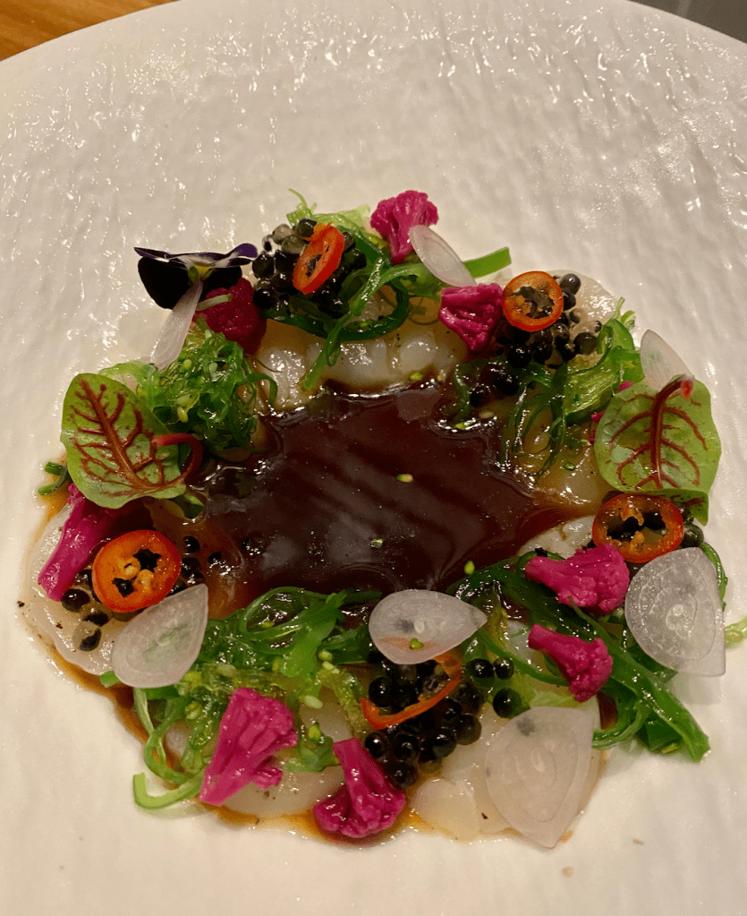 With more room in my belly still, my eyes landed on the elegantly presented Scallop Ceviche, a miniature garden wreath from the sea, decorated by micro herbs, wakame seaweed and red chillies, enhancing the already amazing fresh raw scallops laying in a tataki-style soy sauce. Perhaps my favourite bite thus far, I did not expect to be even more impressed by the next scallop dish to come.